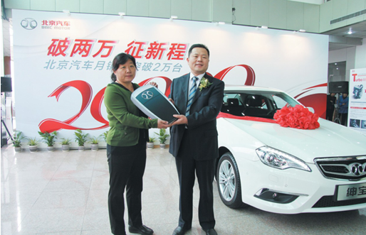 10月31日,在北京天樂國汽汽車技術服務有限公司銷售大廳里,家住昌平區的徐宏女士,興高采烈地從北汽股份執行副總裁陳宏良手中接過紳寶的車鑰匙,她不僅有幸成為北京汽車的第20000 輛車主,也和在場的北汽股份總裁李峰等領導、北汽股份銷售公司的領導及北京6 家經銷商客戶代表,一同見證了北京汽車首次月銷突破兩萬臺這一令人激動的歷史性時刻。徐宏女士非常高興地說:“我很激動,我開了7 年北京現代的車,就想置換一輛咱們自主品牌的車。對于紳寶轎車,無論是從動力還是配置,外觀還是內飾,我都非常滿意。我周圍的朋友也有開紳寶的,都說非常棒,而且價格也能接受。此外,對于北京汽車的質量我一萬個放心。”