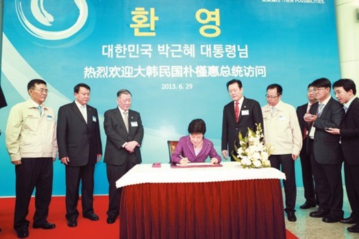6月29日,在中國訪問的韓國總統樸槿惠專程來到北京現代進行考察。她對北京現代所取得的成就給予了高度評價,期待在未來發展中,北京現代繼續為中韓兩國經貿關系的發展做出卓越貢獻。