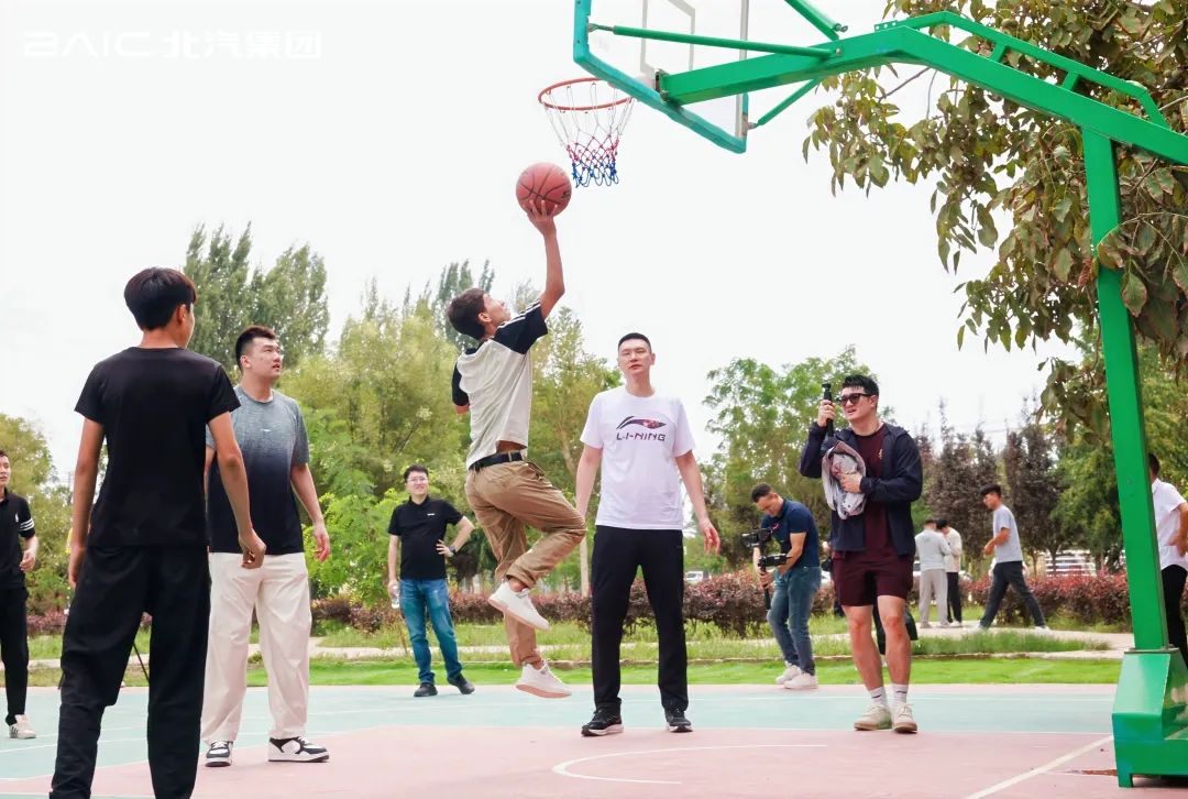 活動尾聲,北汽男籃隊員化身教練,帶領孩子們開展籃球訓練賽。運球、傳球、投籃……現場笑聲與加油聲此起彼伏。比賽結束后,隊員們為獲勝隊伍贈予北汽車模,并鼓勵孩子們堅持運動、勇敢追夢。